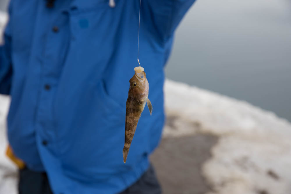 厳冬期に入ってからは海氷上で釣りを行います。 大物への期待が高まります。
